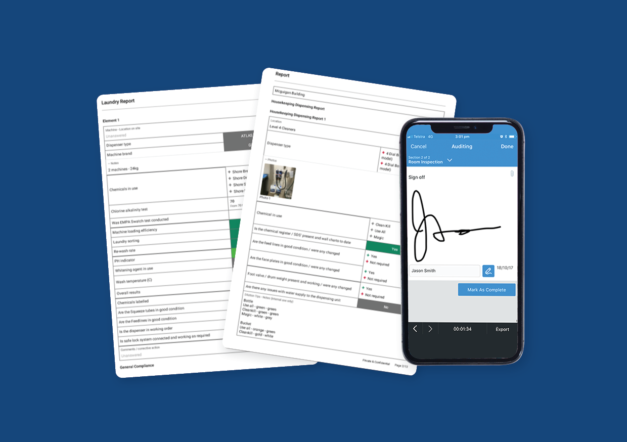Online Service Reports are available across all areas of your business where chemicals are used including kitchen, housekeeping and laundry. It offers customer sign offs for visibility, traceability and confirmation of work completed.